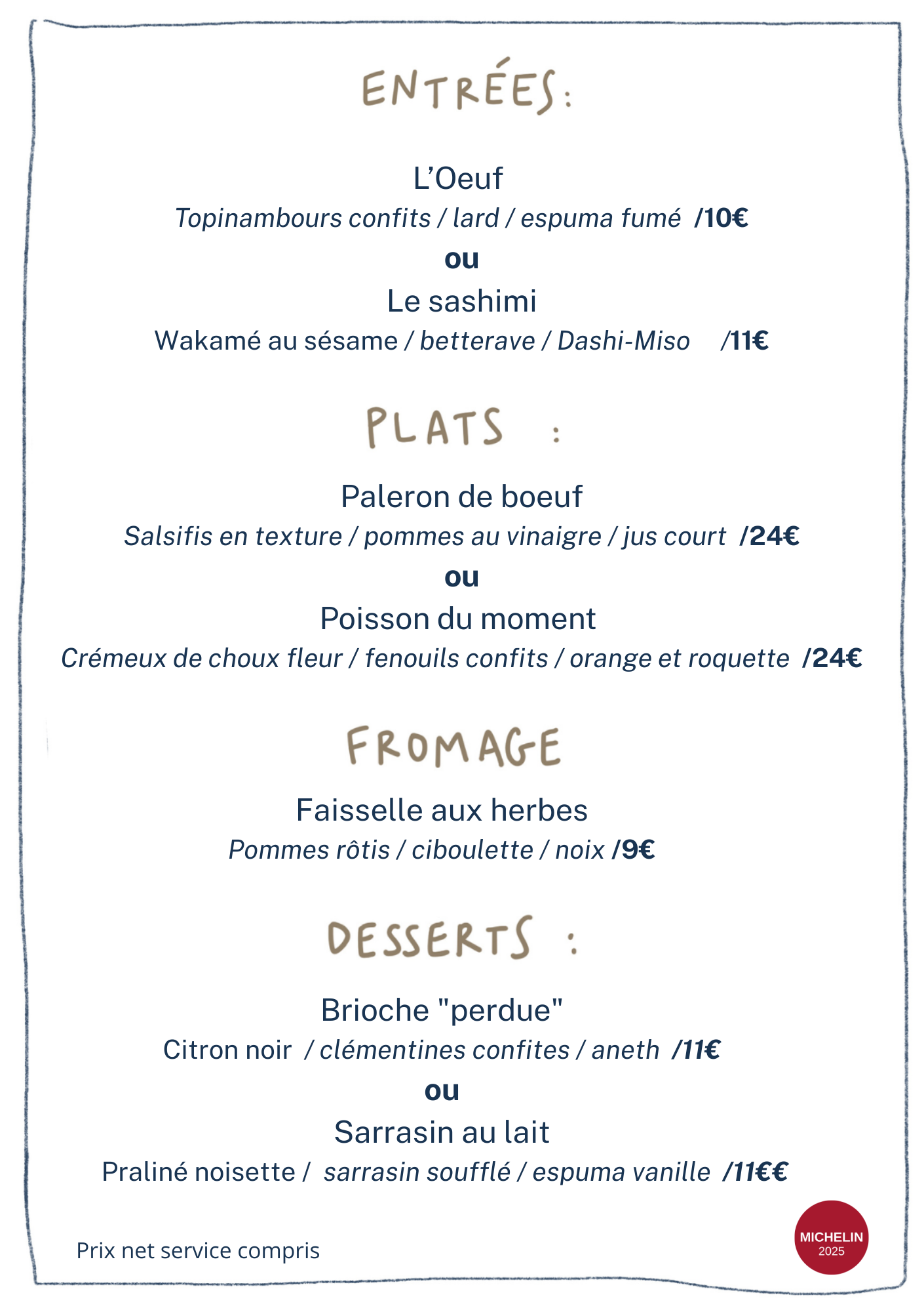 Nos cartes changent très régulièrement, certains plats peuvent être différents lors de votre venue.