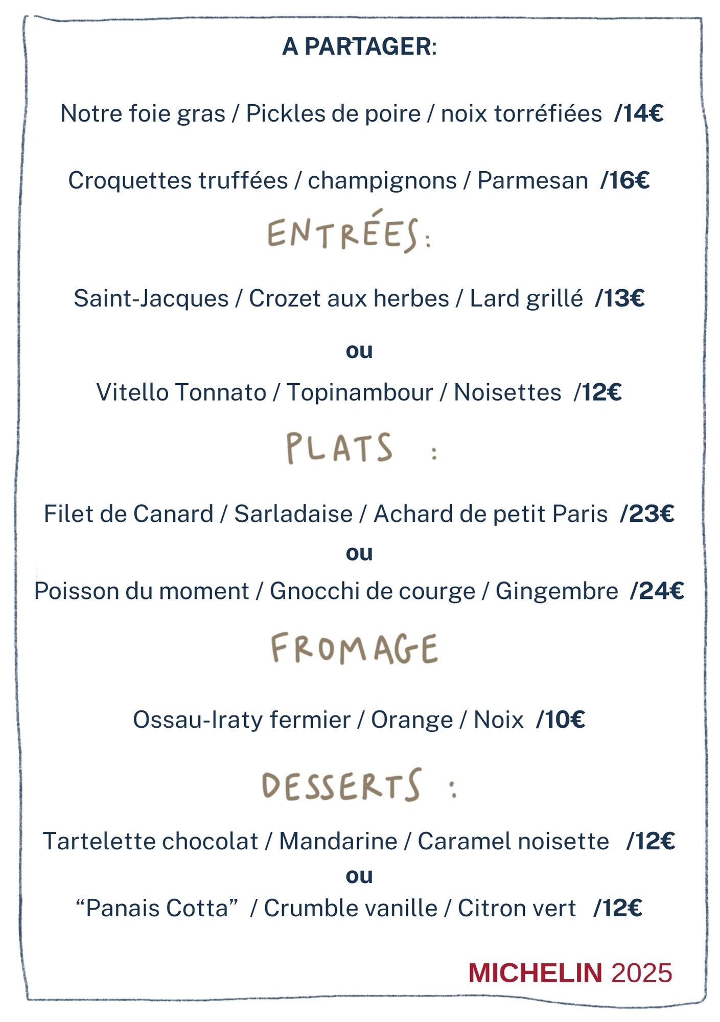 Nos cartes changent très régulièrement, certains plats peuvent être différents lors de votre venue.