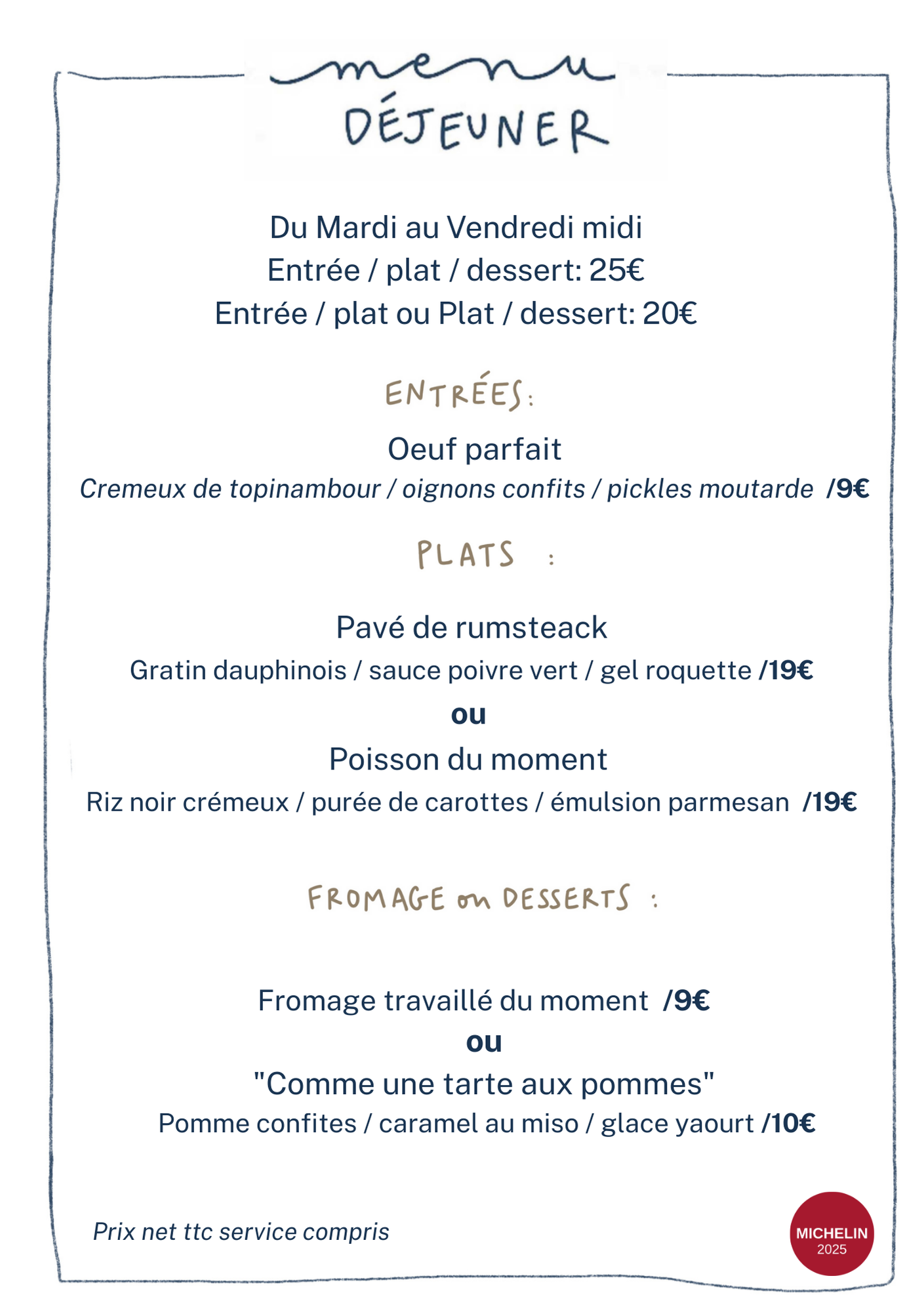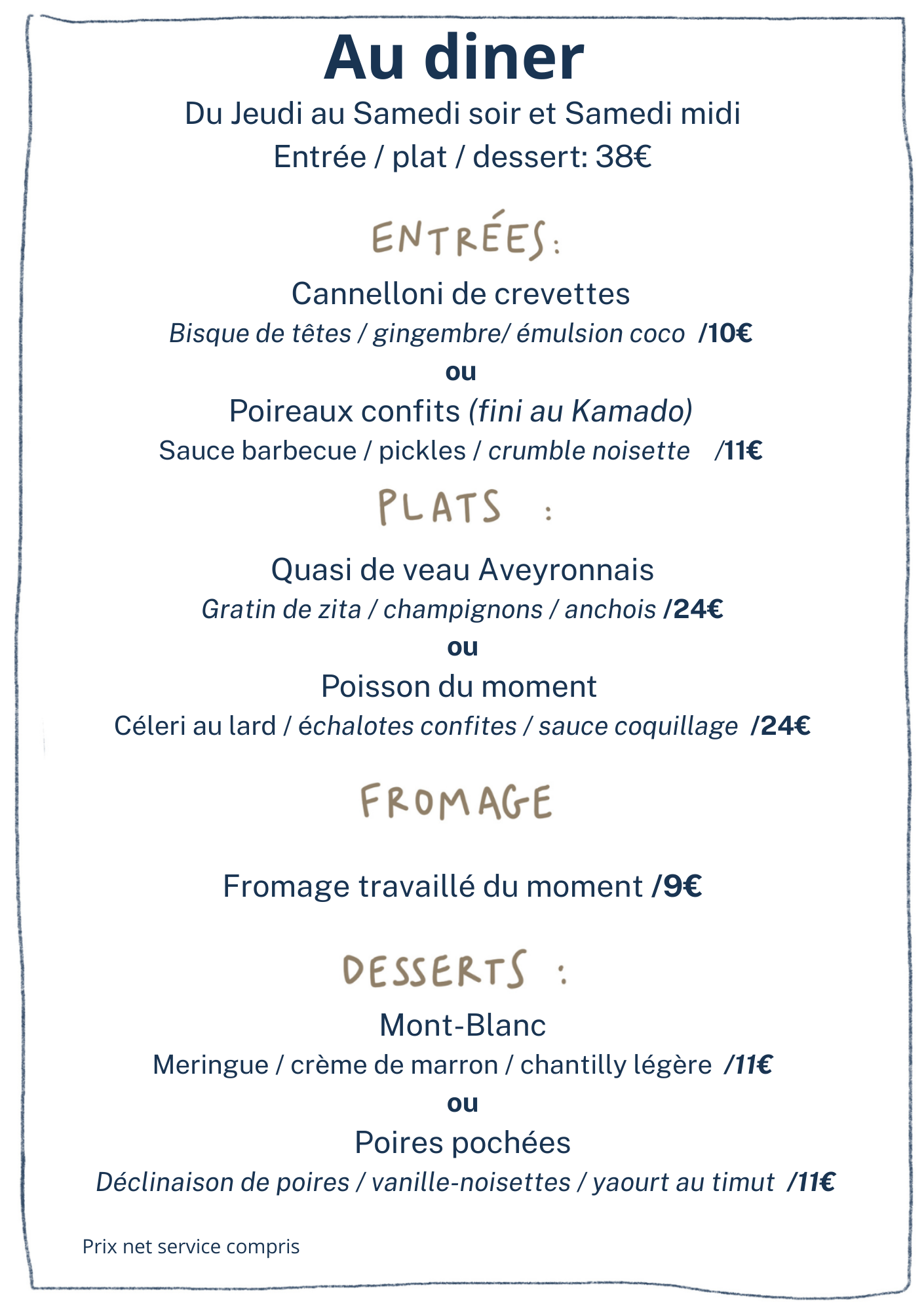 Nos cartes changent très régulièrement, certains plats peuvent être différents lors de votre venue.
